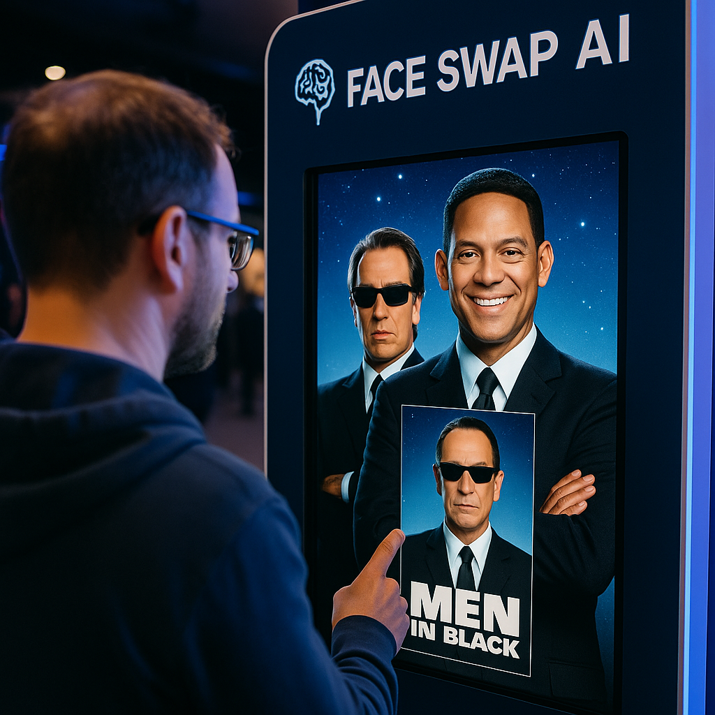 Vivez une expérience photo inédite grâce à l’intelligence artificielle ! Le Face Swap AI échange votre visage en temps réel avec celui d’une célébrité ou d’un personnage de film. Ludique, viral et 100 % personnalisable, il attire l’attention et crée un souvenir mémorable que vos visiteurs partagent instantanément.